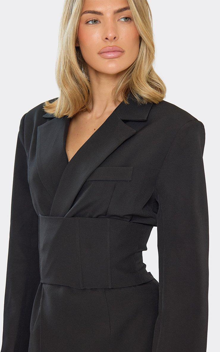 long sleeve cinched waist corset detail blazer in black
