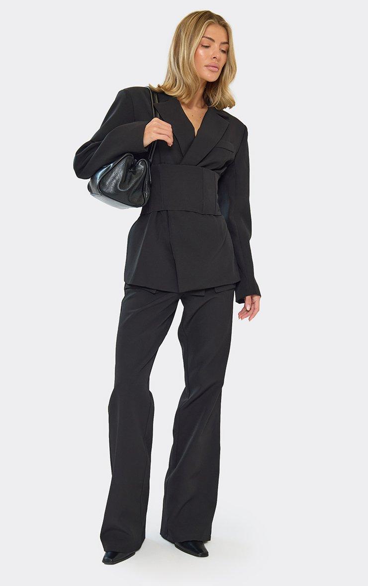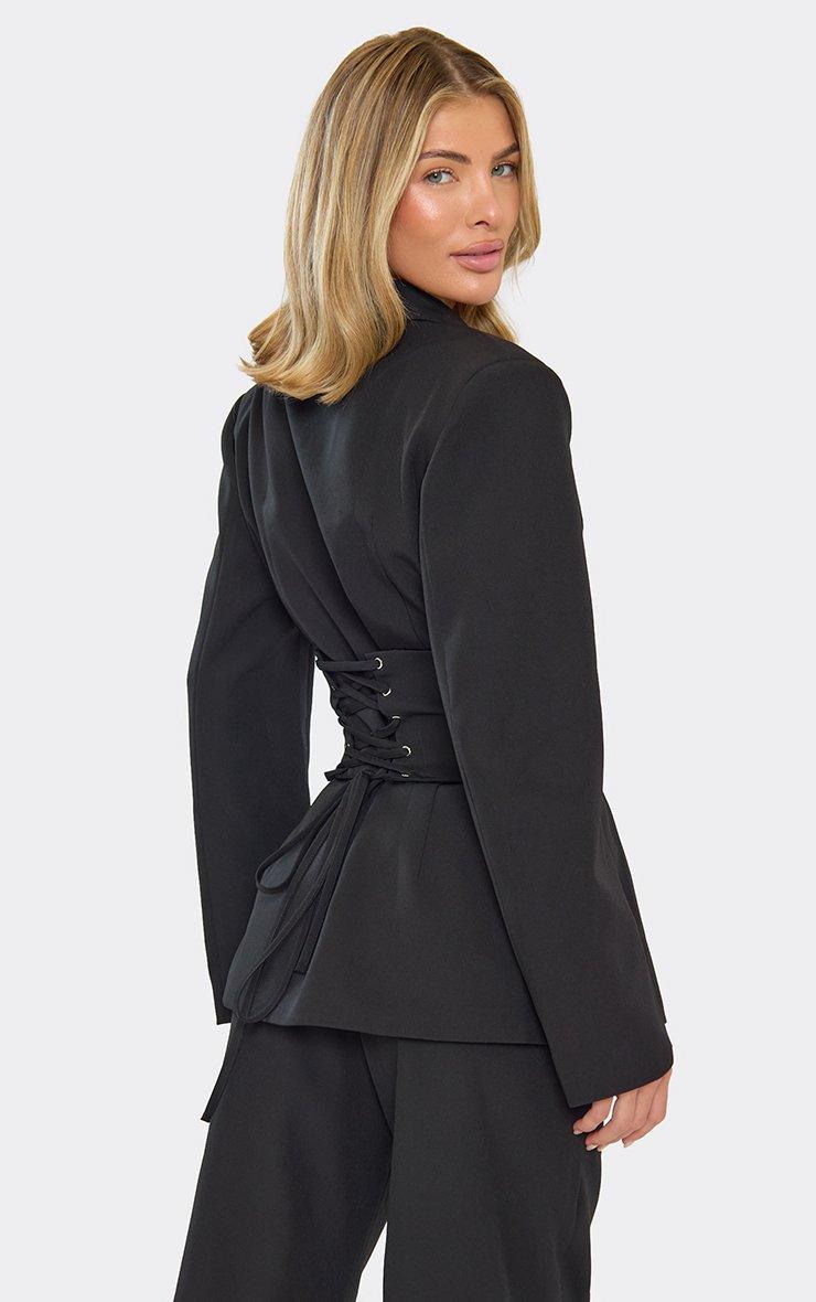 Long Sleeve Cinched Waist Corset Detail Blazer In Black