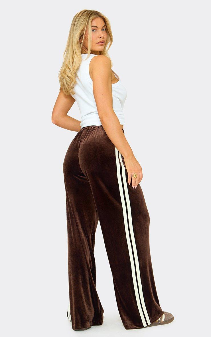 Mid Rise Drawstring Side Stripe Velour Joggers In Chocolate Brown
