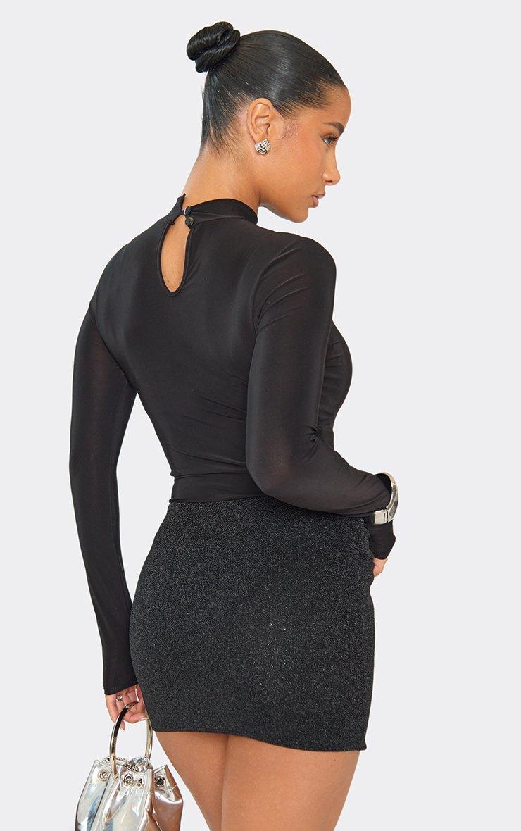 mid rise drape ruched mini skirt in black glitter