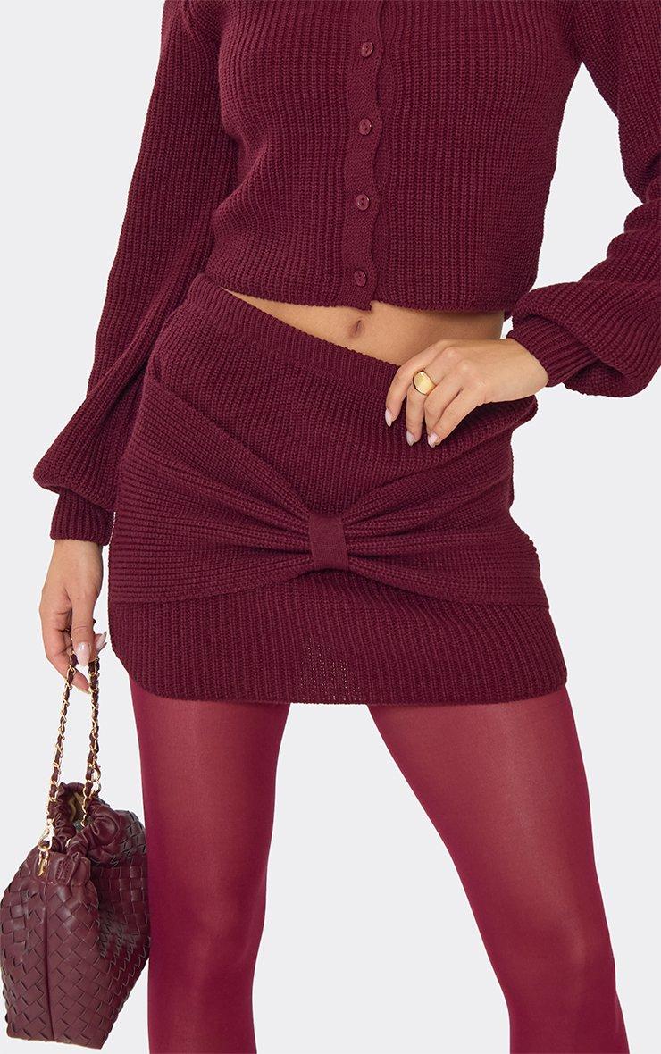 Long Sleeve Cinched Waist Jumper In Burgundy Knit