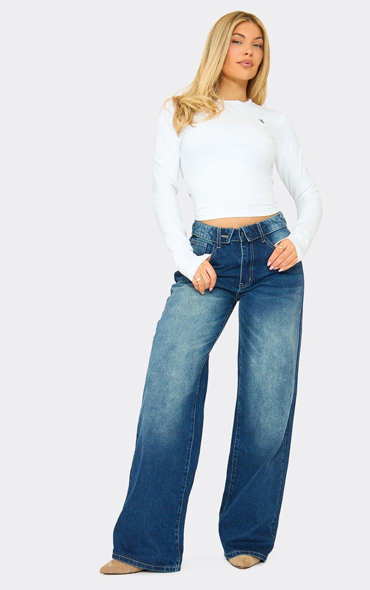 Long Sleeve Logo Detail Fitted Top In White Cotton Jersey
