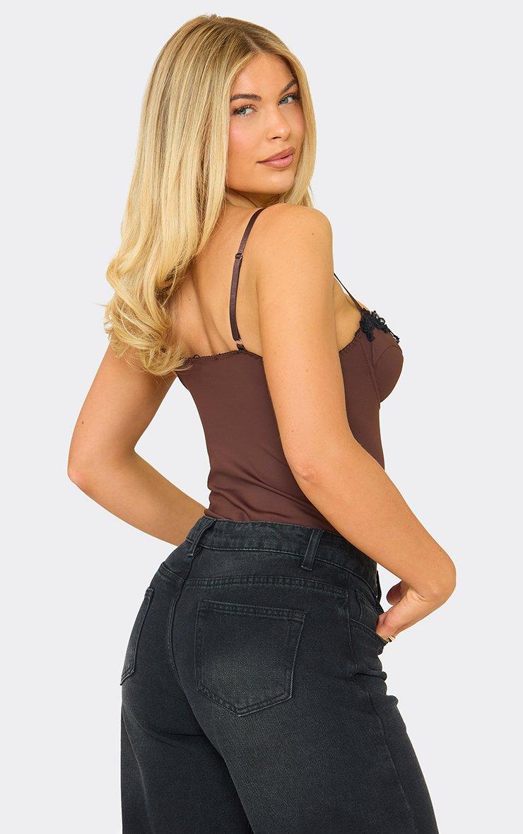 Strappy Lace Trim Detail Corset Bodysuit In Chocolate Brown