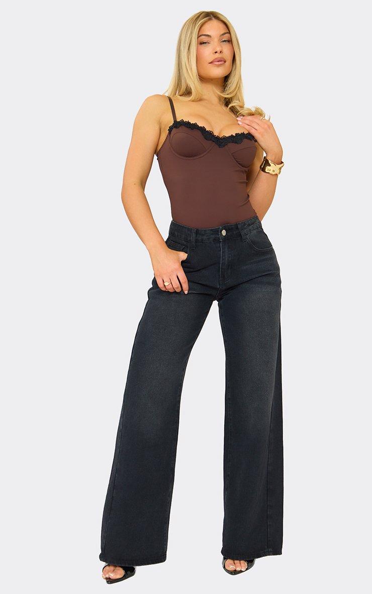 strappy lace trim detail corset bodysuit in chocolate brown