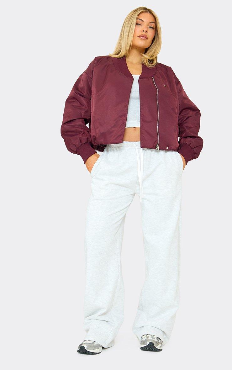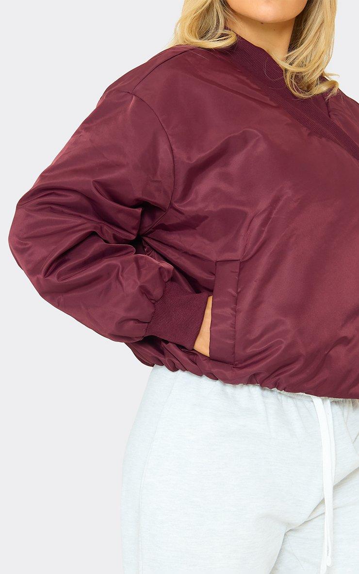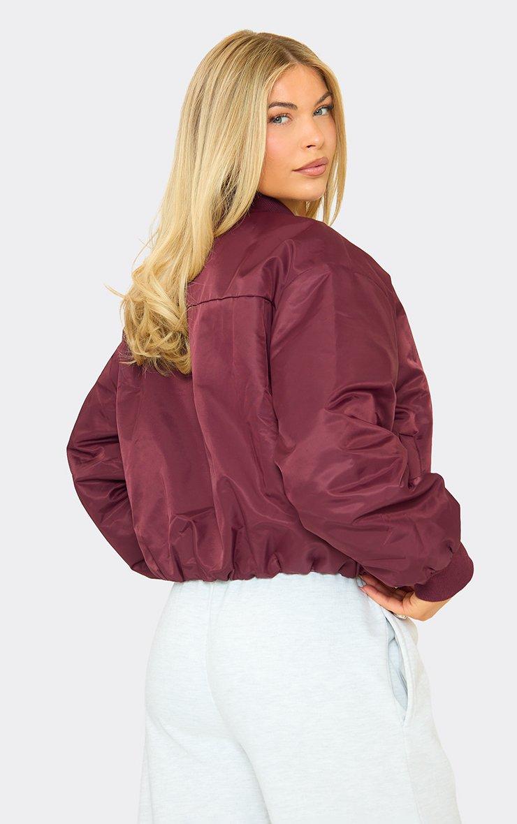 Long Sleeve Oversized Padded Crop Bomber Jacket In Burgundy