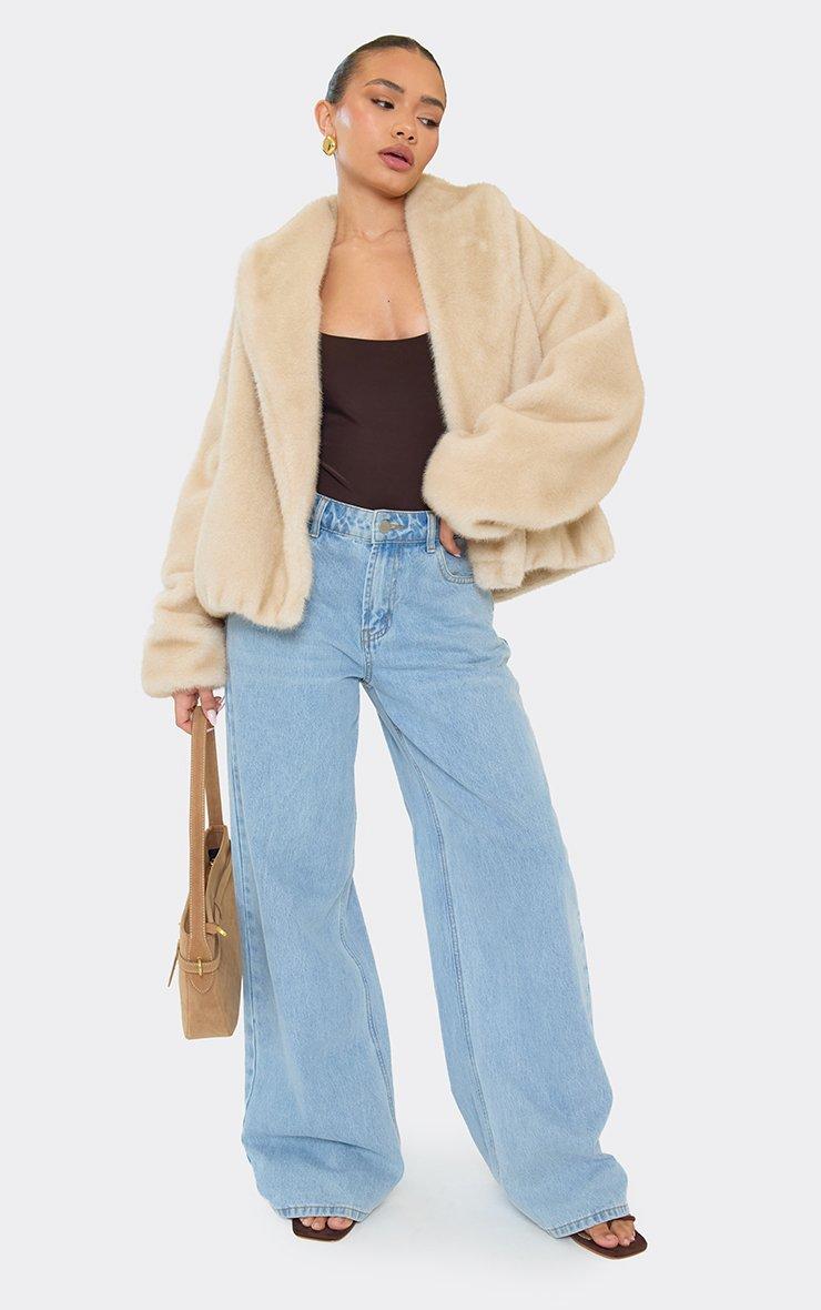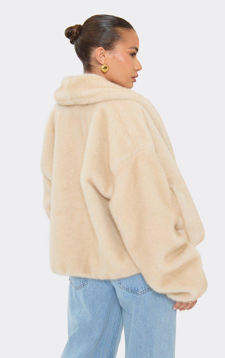 Collared Detail Bomber Coat In Stone Faux Fur