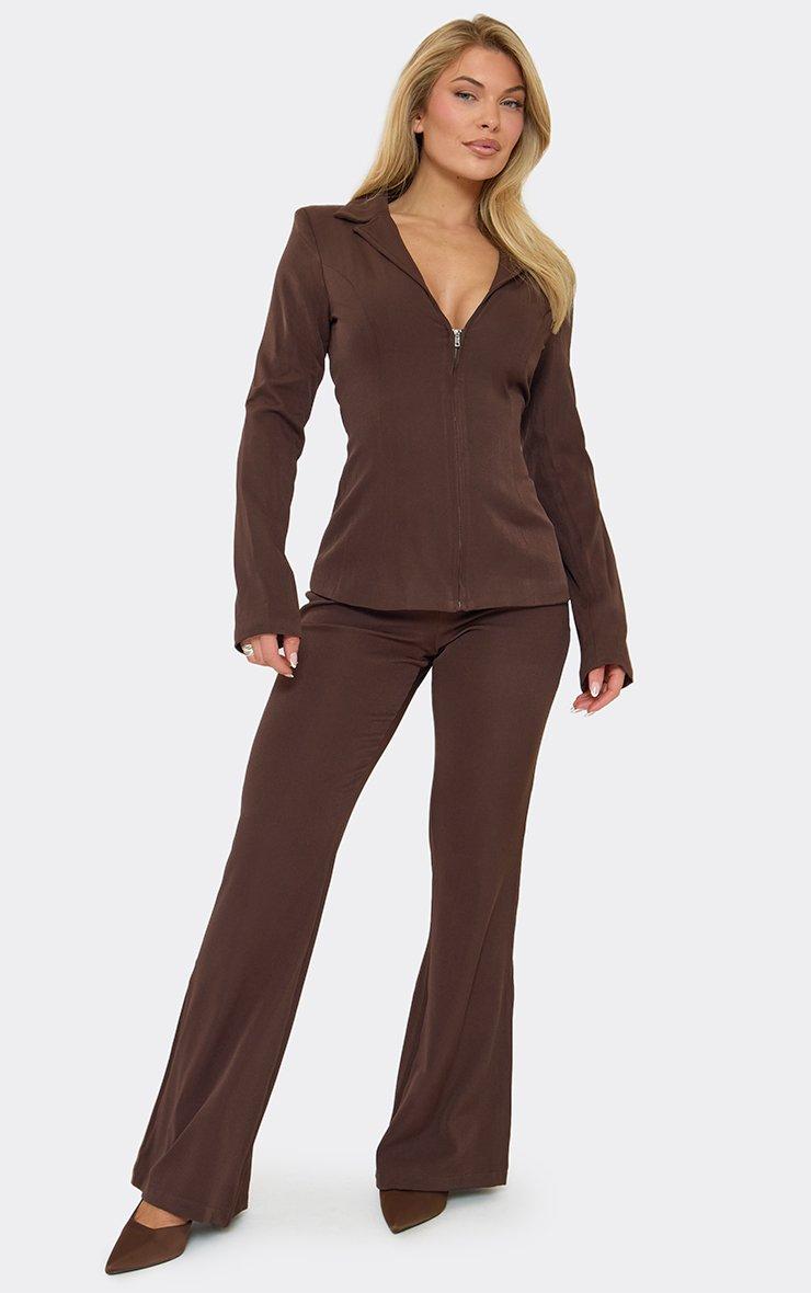 Mid Rise Flared Trousers In Chocolate Brown