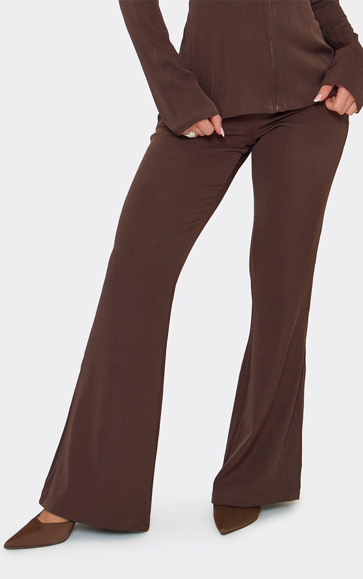mid rise flared trousers in chocolate brown