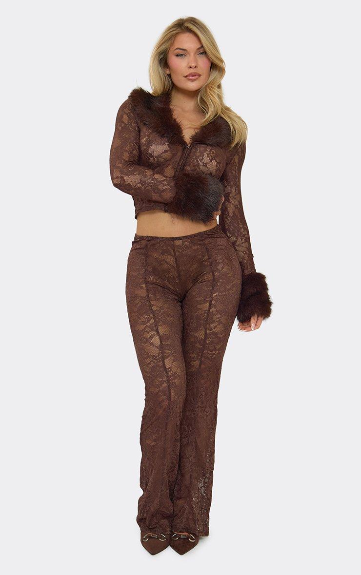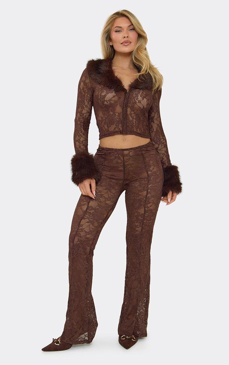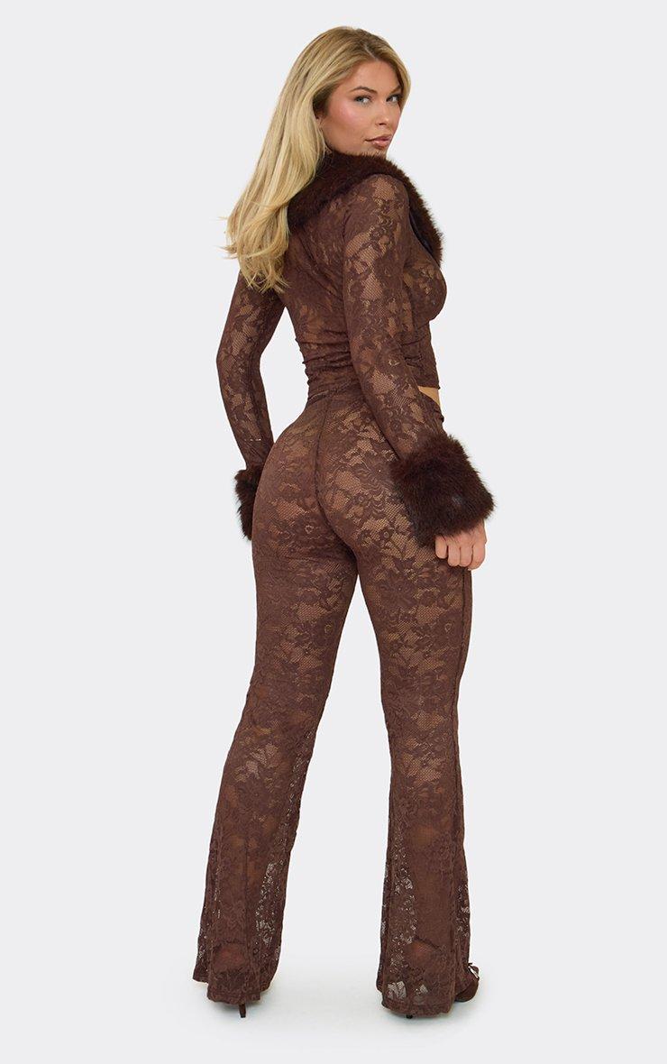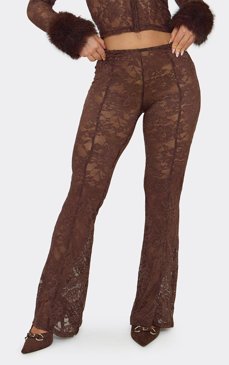 Low Rise Flared Trousers In Chocolate Brown Lace