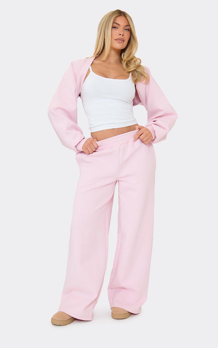 Low Rise Seam Detail Wide Leg Joggers In Pink
