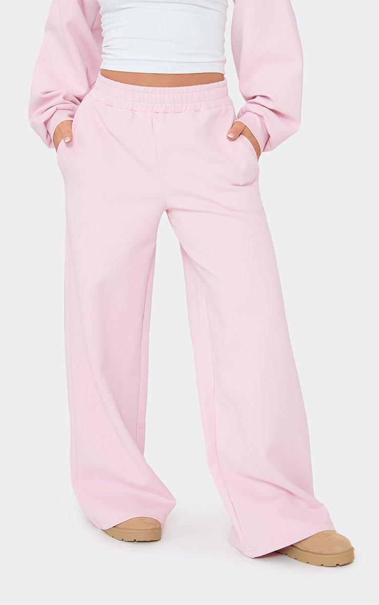 Low Rise Seam Detail Wide Leg Joggers In Pink