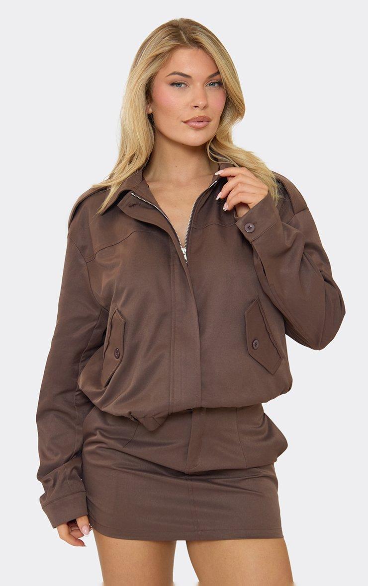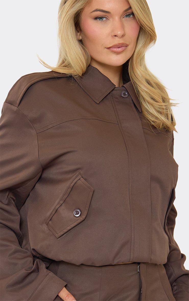 Oversized Pocket Detail Jacket In Chocolate Brown