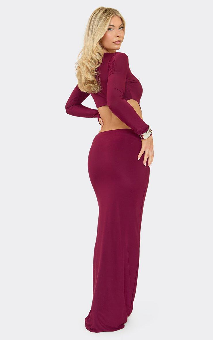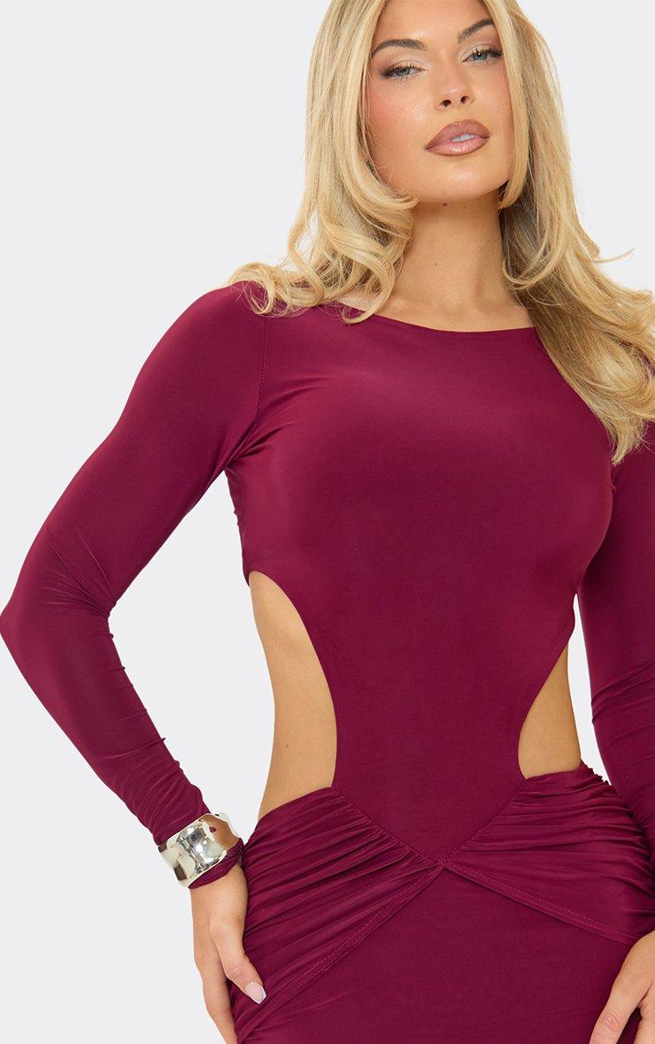Long Sleeve Cut Out Ruched Detail Maxi Dress In Burgundy