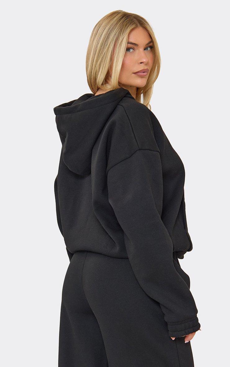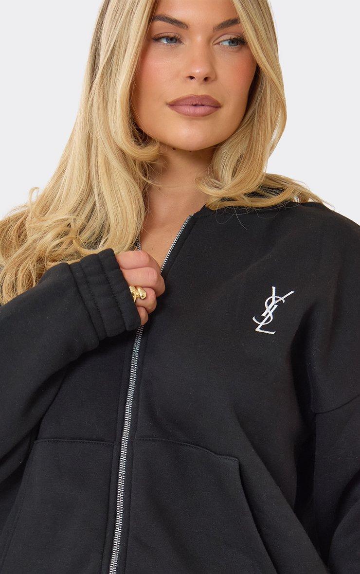 Embroidered Graphic Zip Up Oversized Hoodie In Black