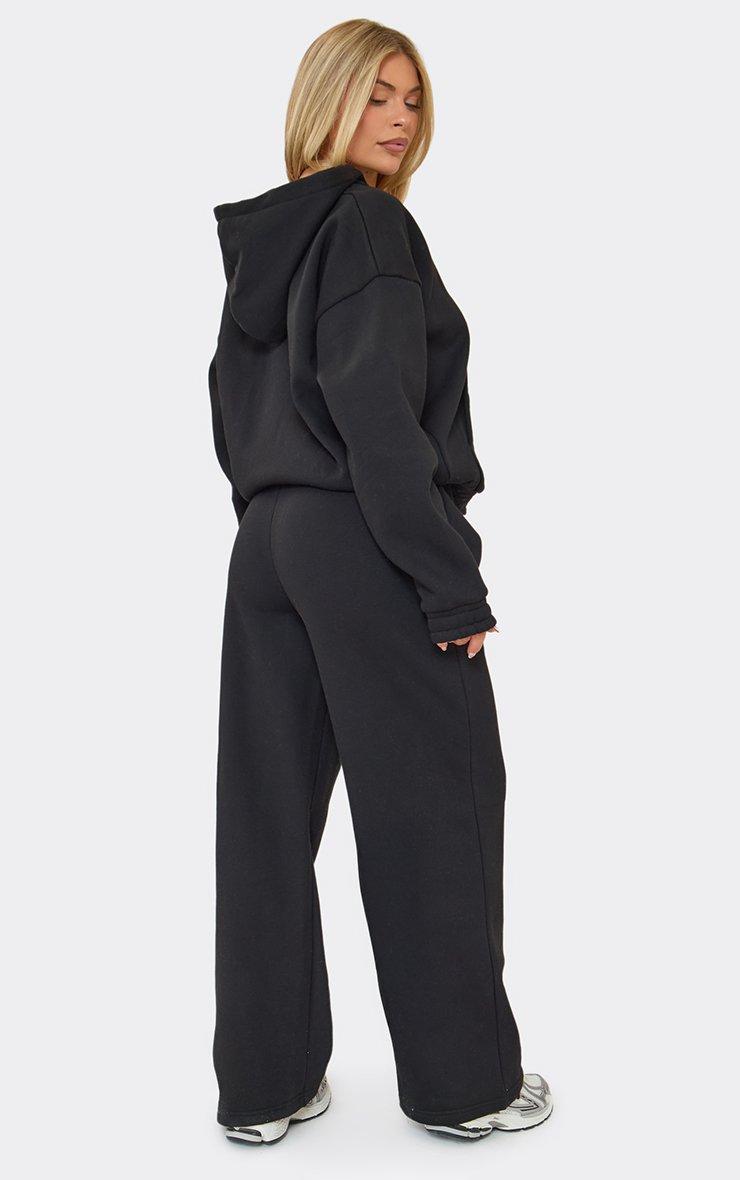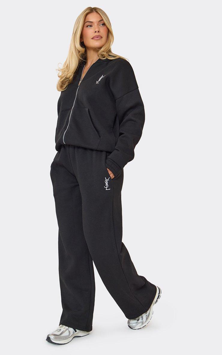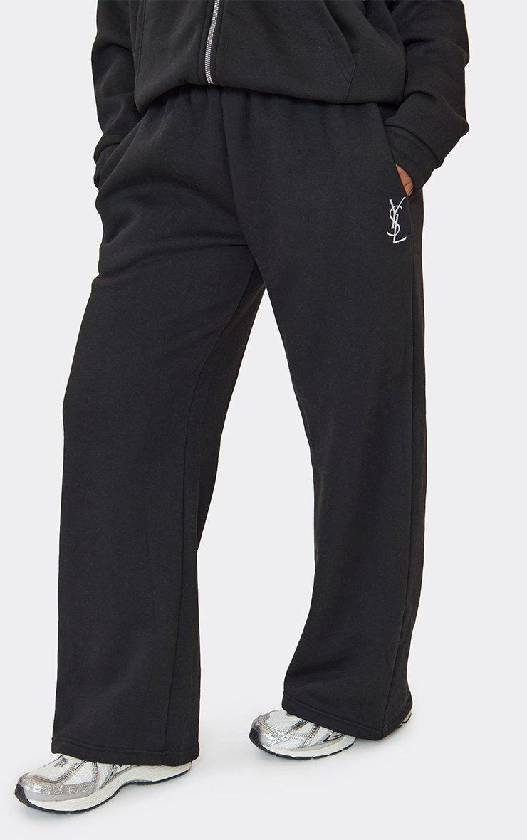 mid rise embroidered graphic wide leg joggers in black