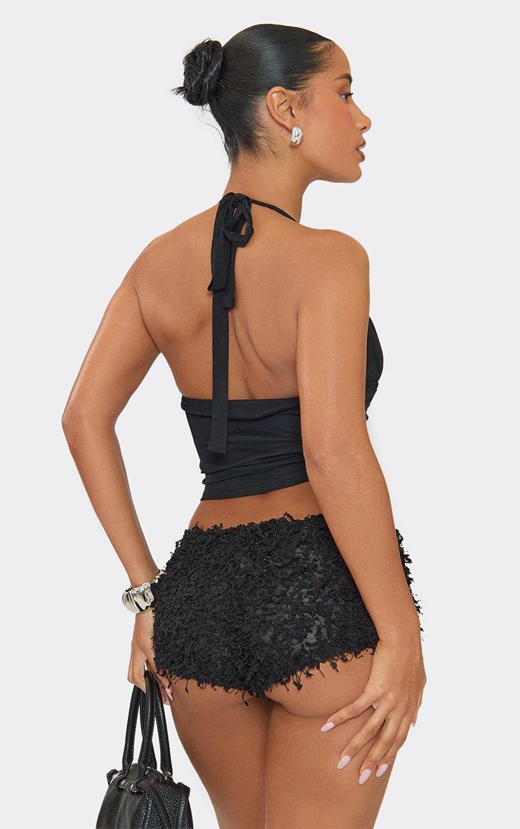 Mid Rise Ruffle Layered Detail Micro Shorts In Black