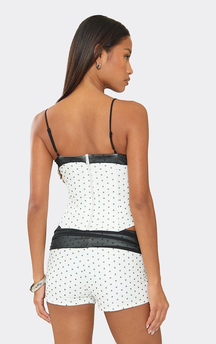 mesh foldover detail hotpant booty shorts in cream polka dot print
