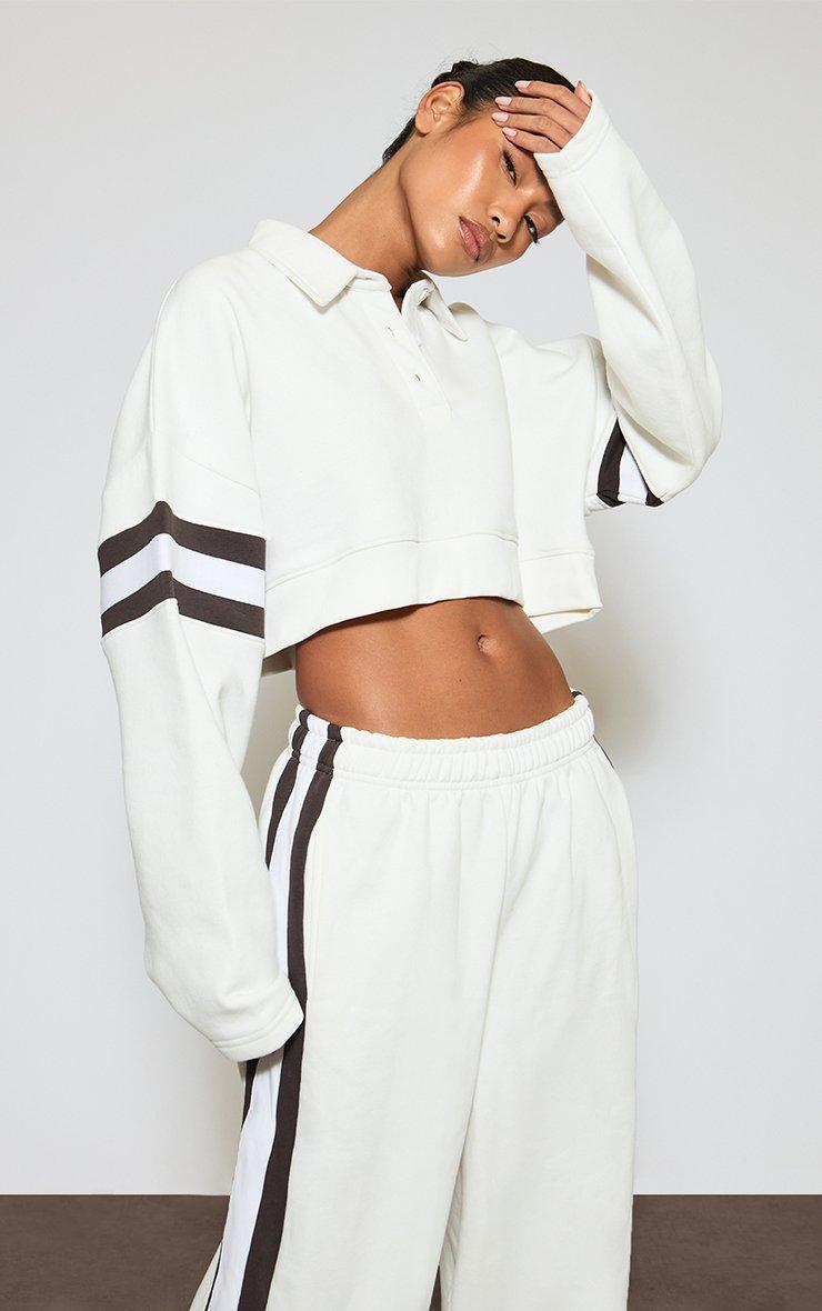 contrast stripe cropped polo sweatshirt in cream