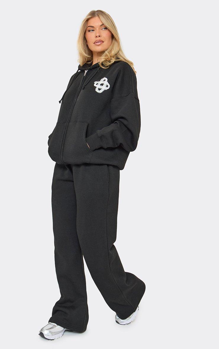 Low Rise Back Pocket Swirl Graphic Detail Wide Leg Joggers In Black