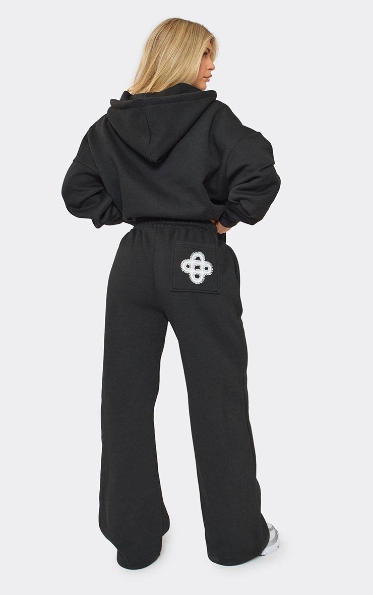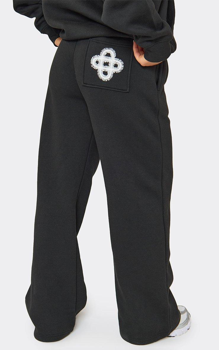 low rise back pocket swirl graphic detail wide leg joggers in black
