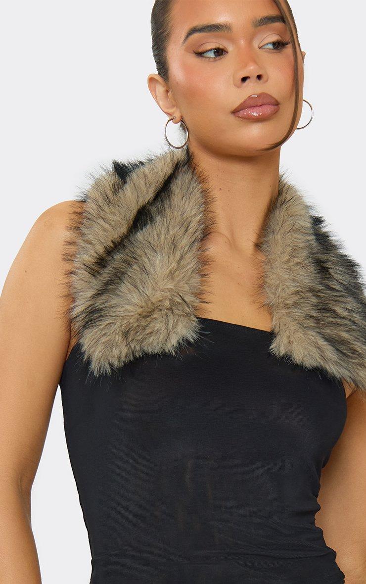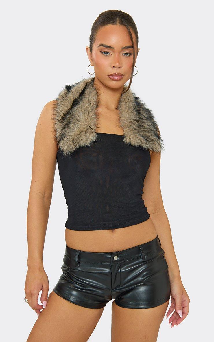 Collared Faux Fur Trim Detail Top In Black
