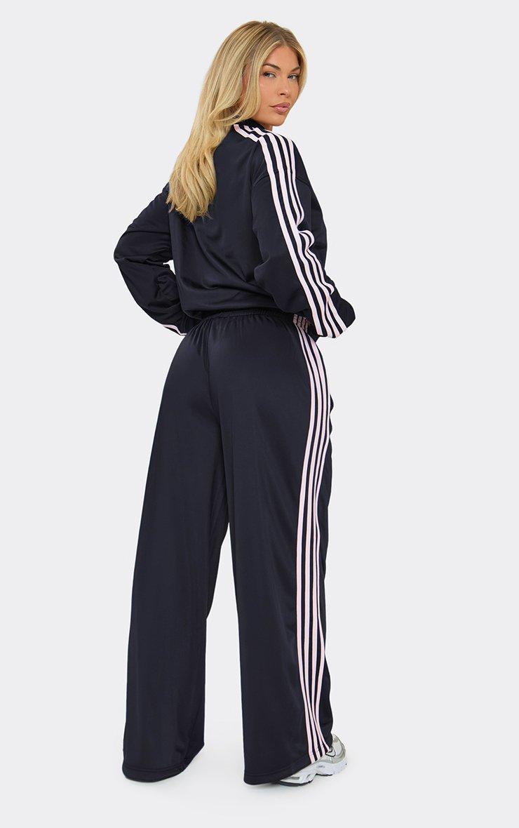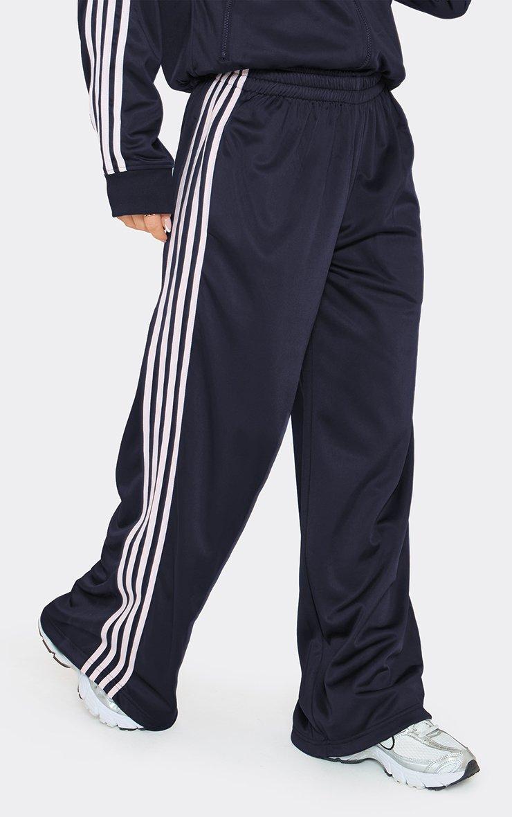 Low Rise Contrast Stripe Wide Leg Joggers In Navy