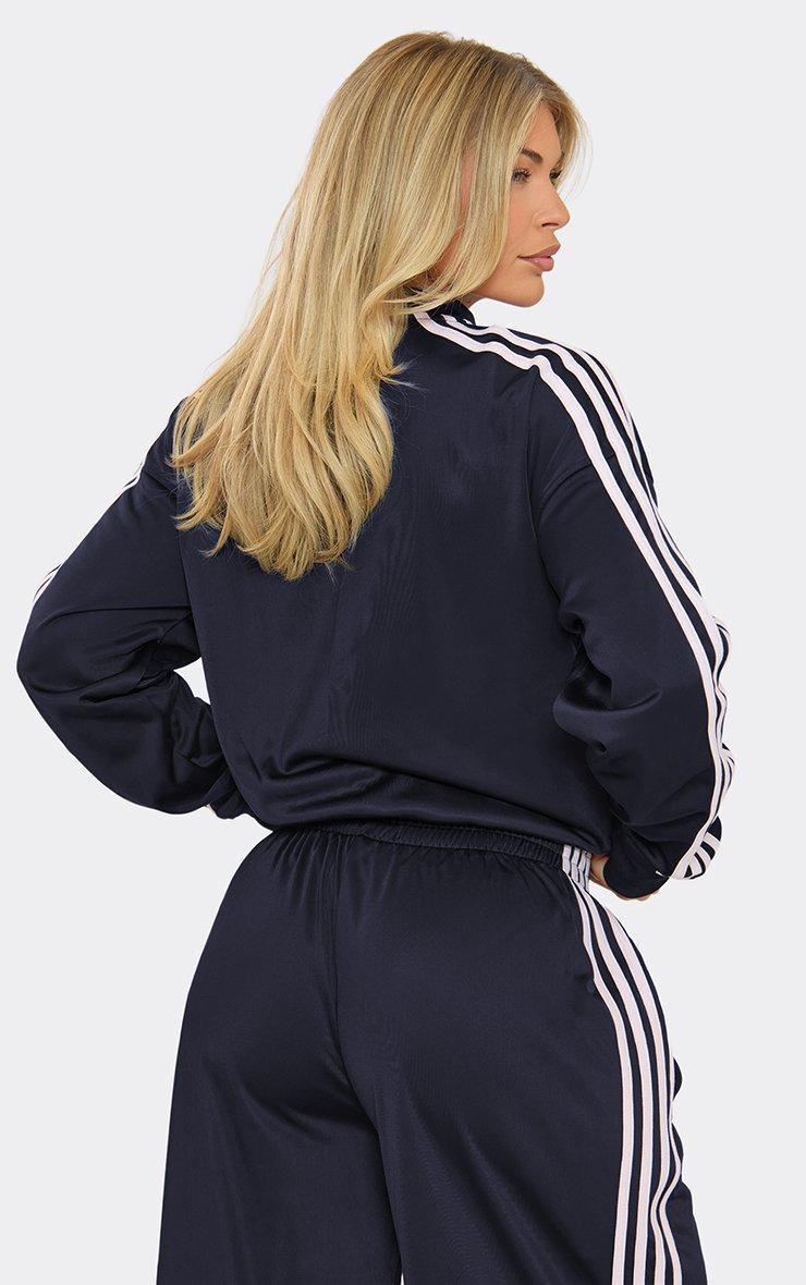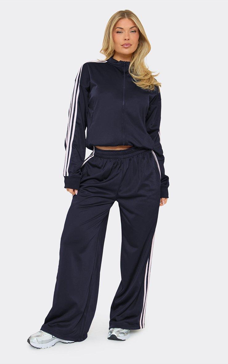 Low Rise Side Stripe Wide Leg Track Pants In Navy Blue
