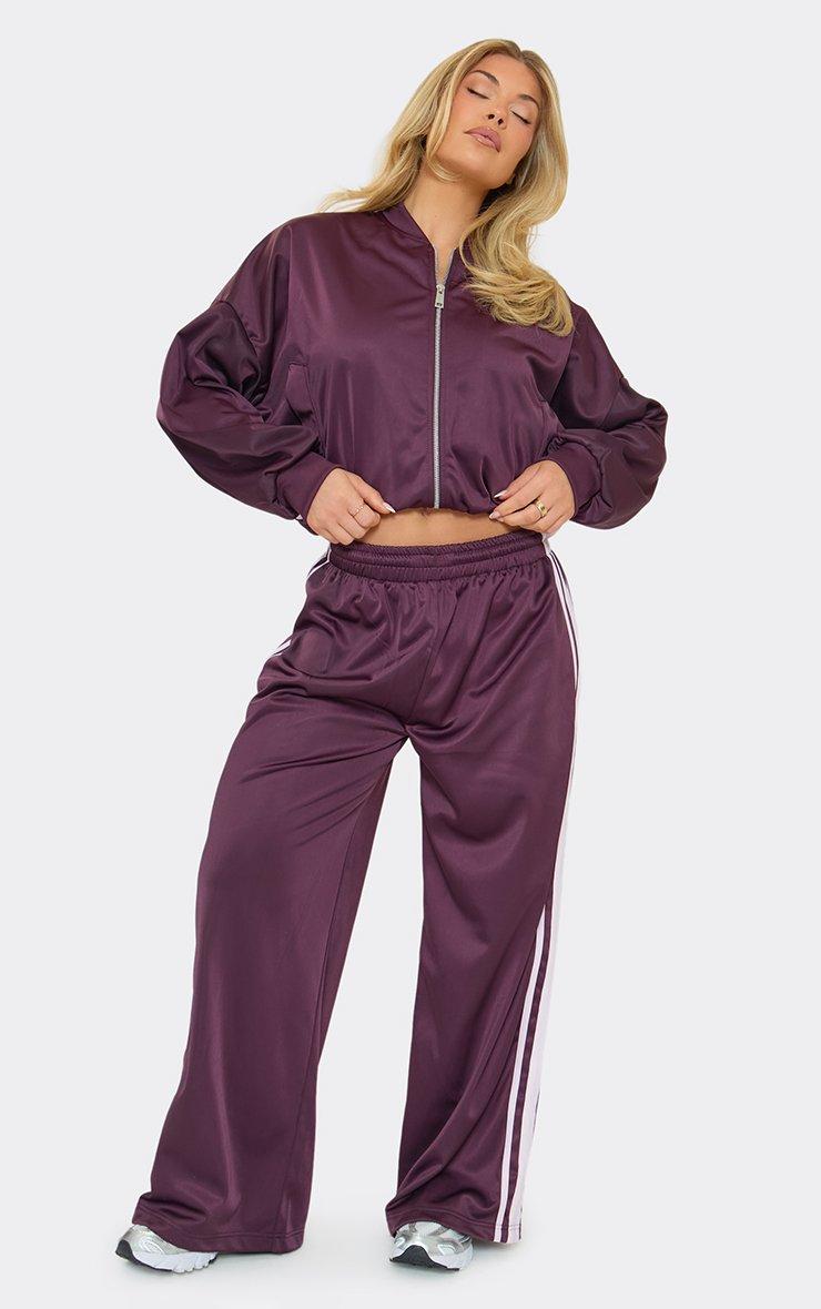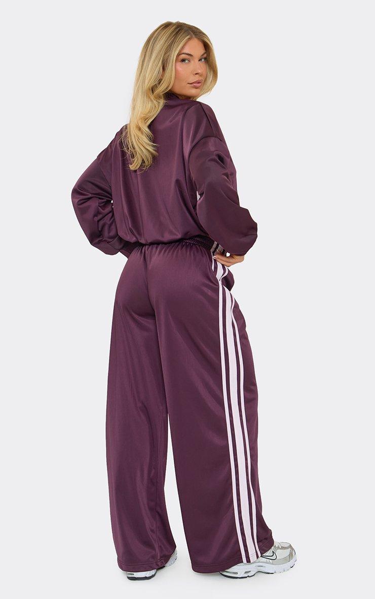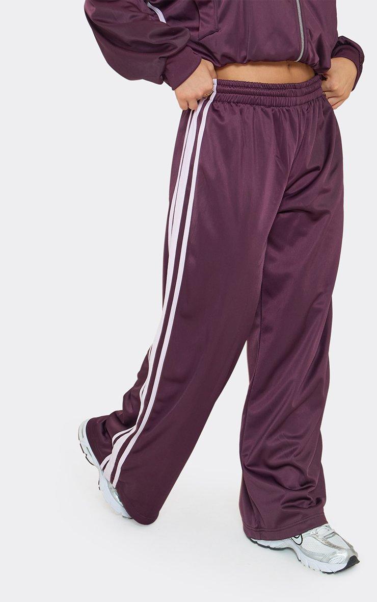 Contrast Stripe Graphic Detail Wide Leg Joggers In Plum