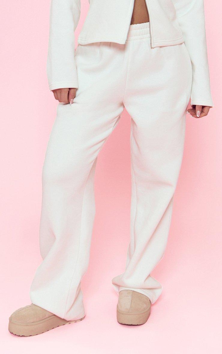 Low Rise Elastic Wide Leg Joggers In Cream