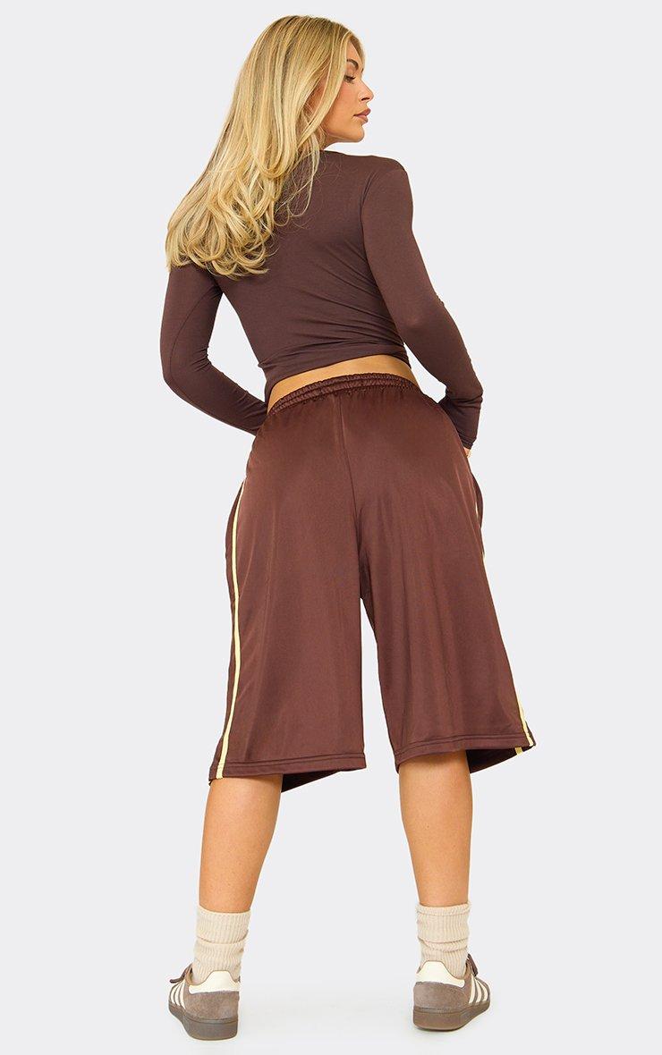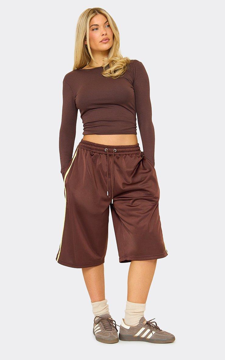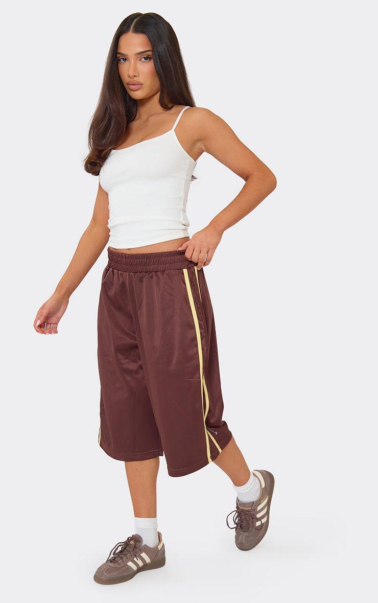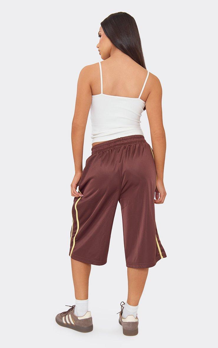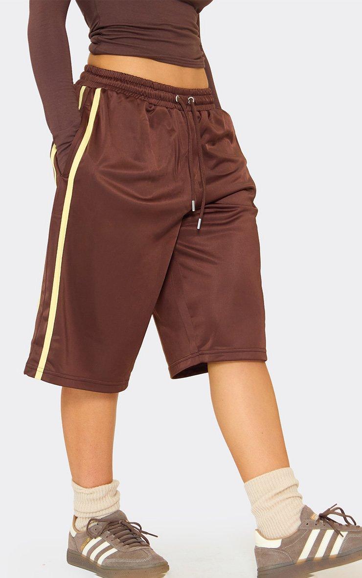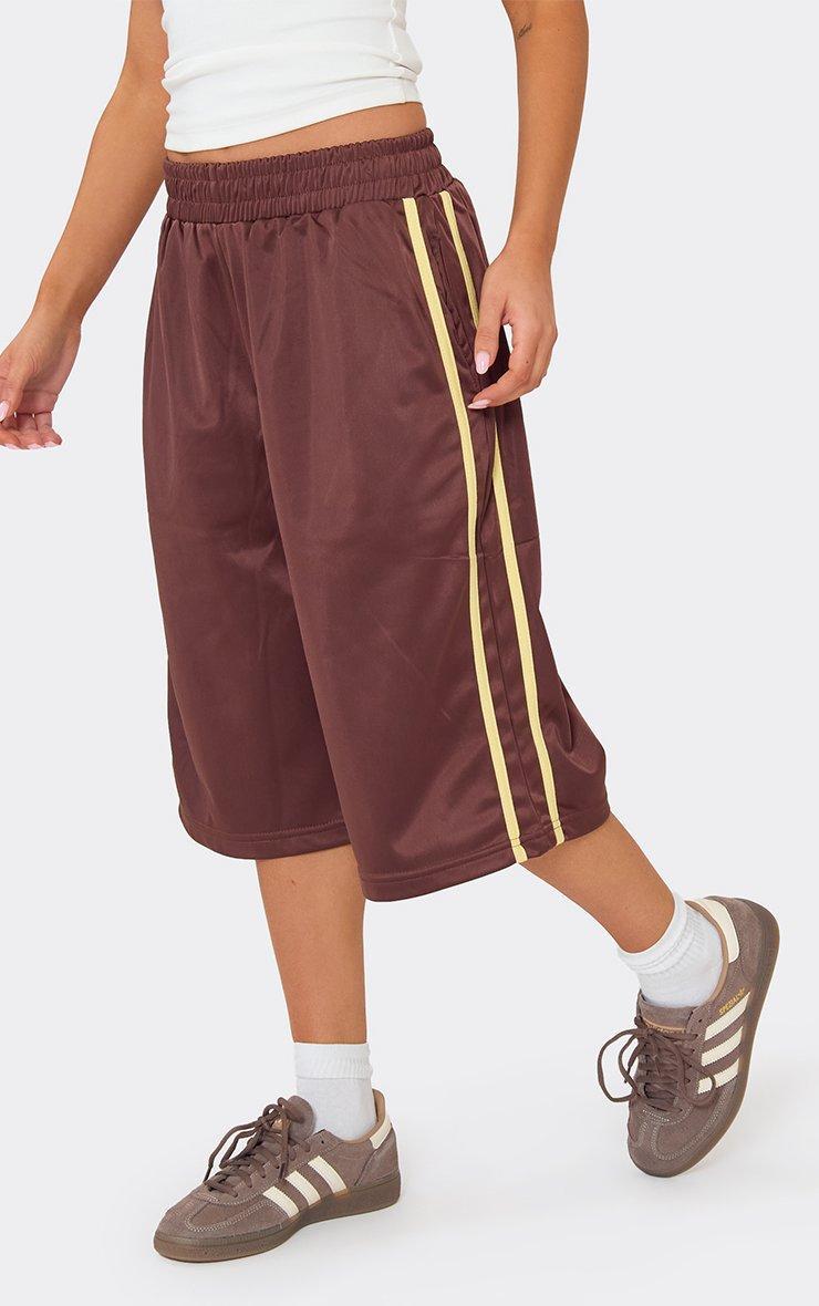 Drawstring Waist Tricot Side Stripe Jorts In Chocolate Brown
