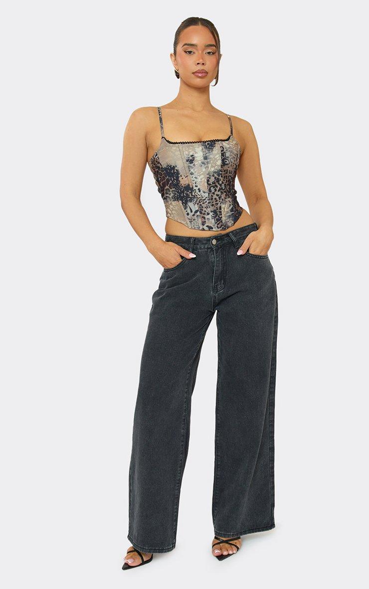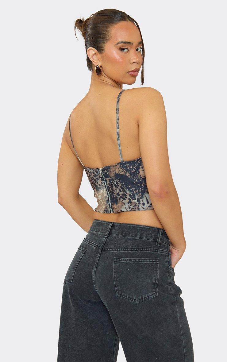 Strappy Contrast Trim Corset Detail Top In Multi Leopard Print