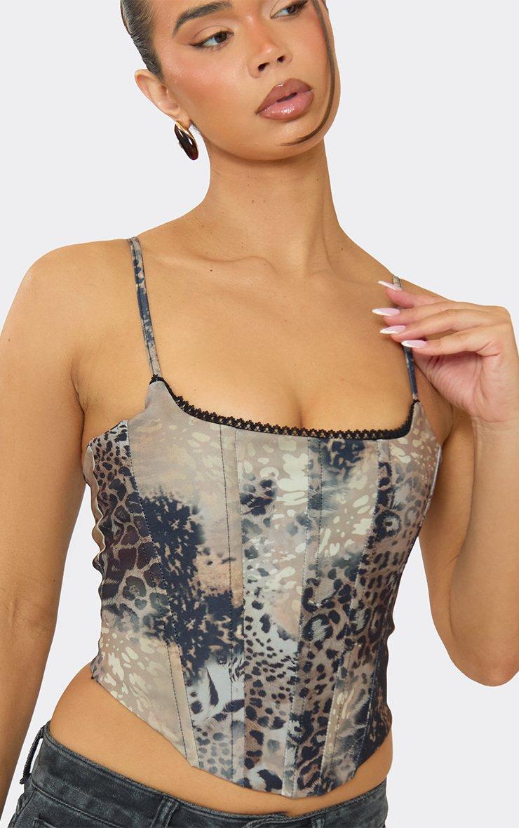 Strappy Lace Trim Corset Top In Multi Animal Print