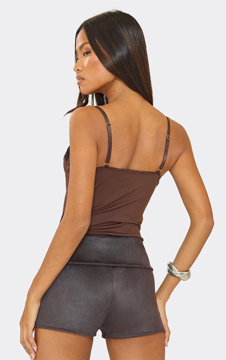 Low Rise Fold Over Waist Hot Pants In Chocolate Brown Faux Suede