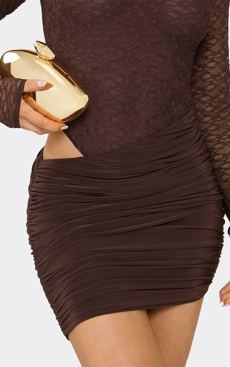 Long Sleeve Cinch Waist Detail Sweatshirt In Chocolate Brown