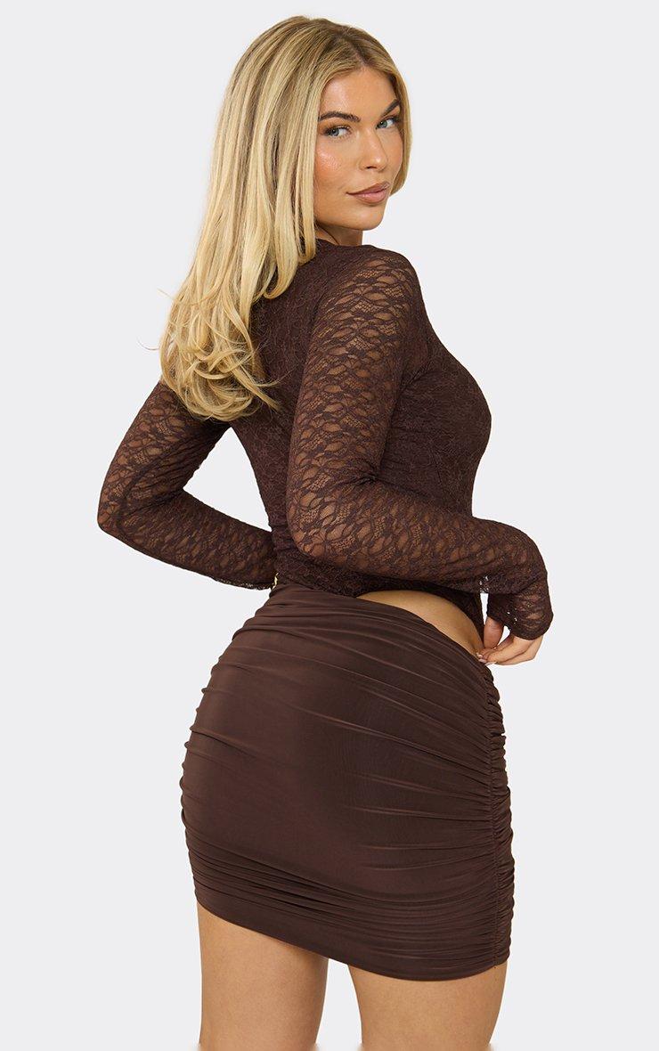 Long Sleeve Bodysuit In Chocolate Lace