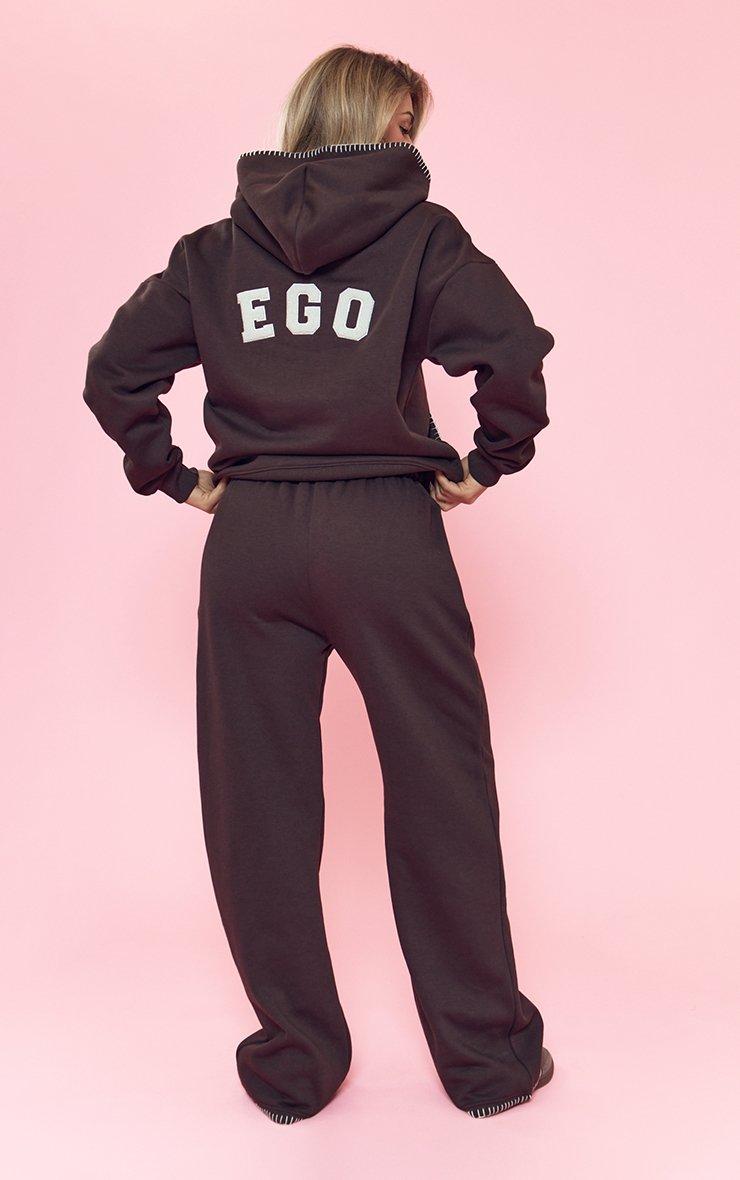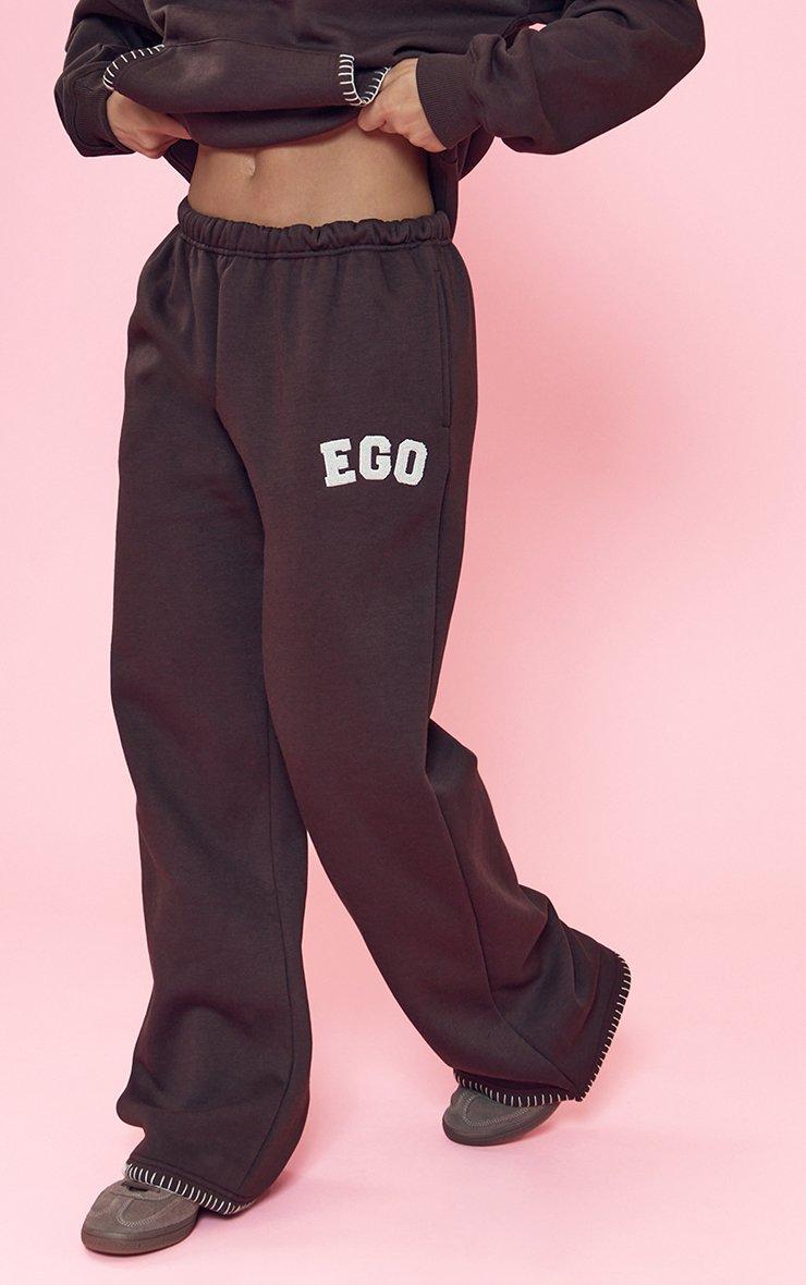 low rise ego borg graphic wide leg joggers in chocolate brown