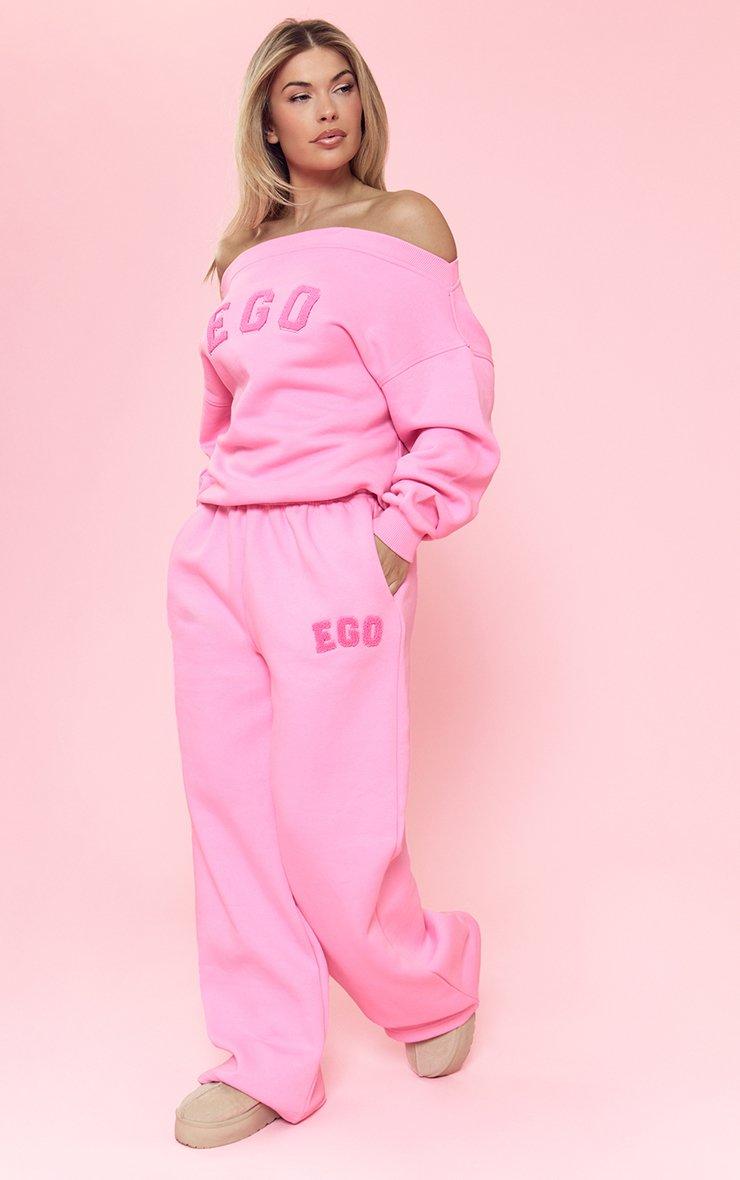 low rise ego borg graphic wide leg joggers in hot pink