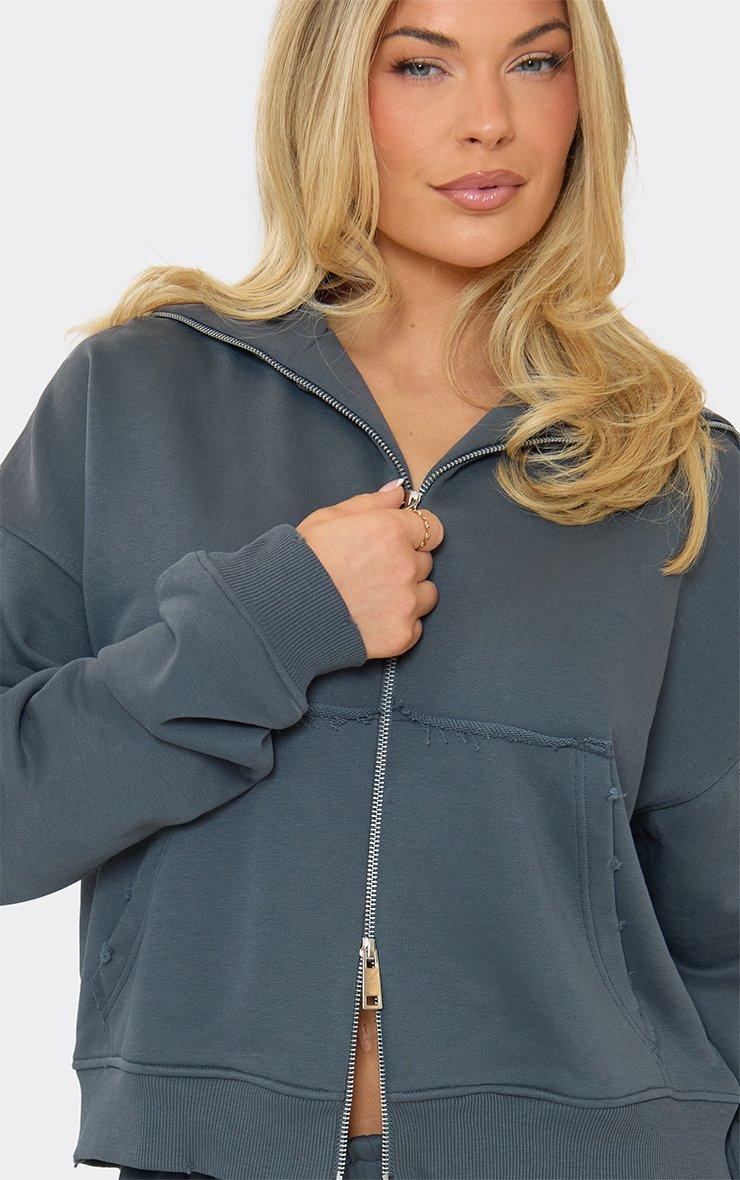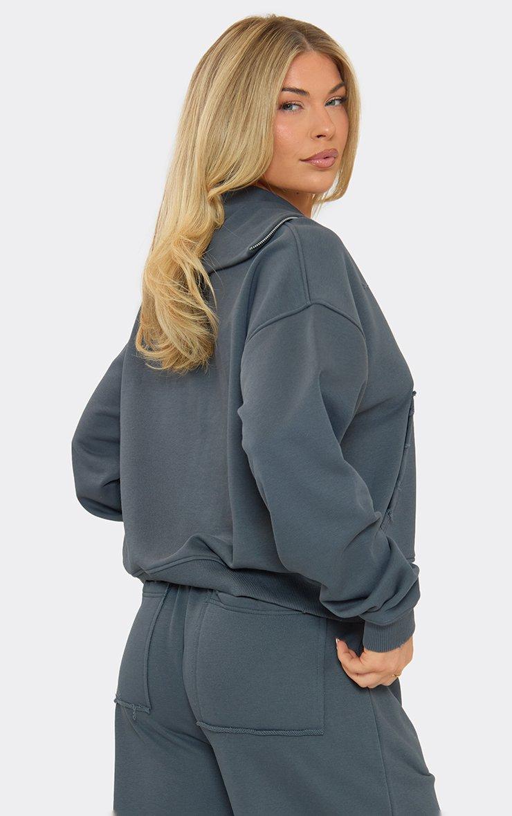 Contrast Panel Pocket Detail Boxy Zip Up Sweatshirt In Navy