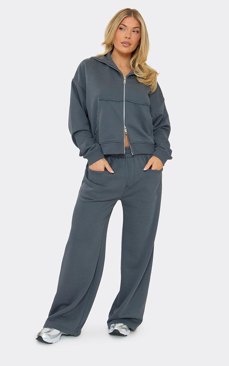 Mid Rise Pocket Detail Wide Leg Joggers In Steel Blue