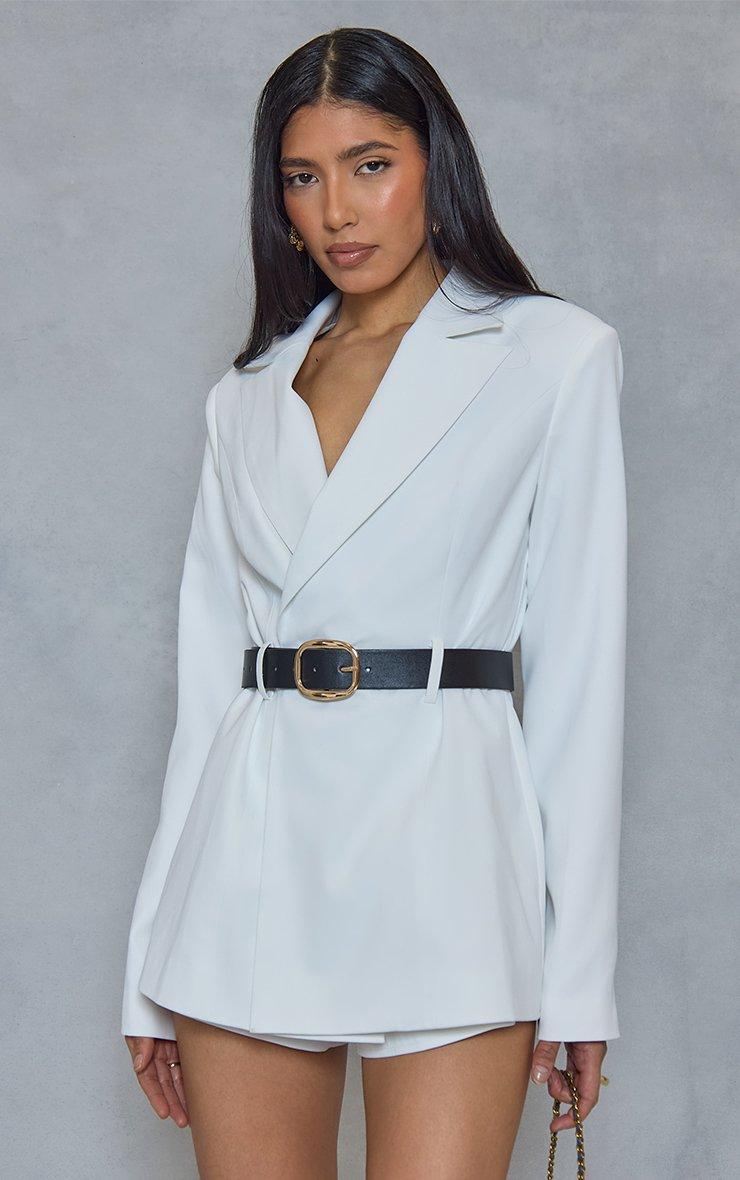 Long Sleeve Belt Detail Tailored Blazer Playsuit In White
