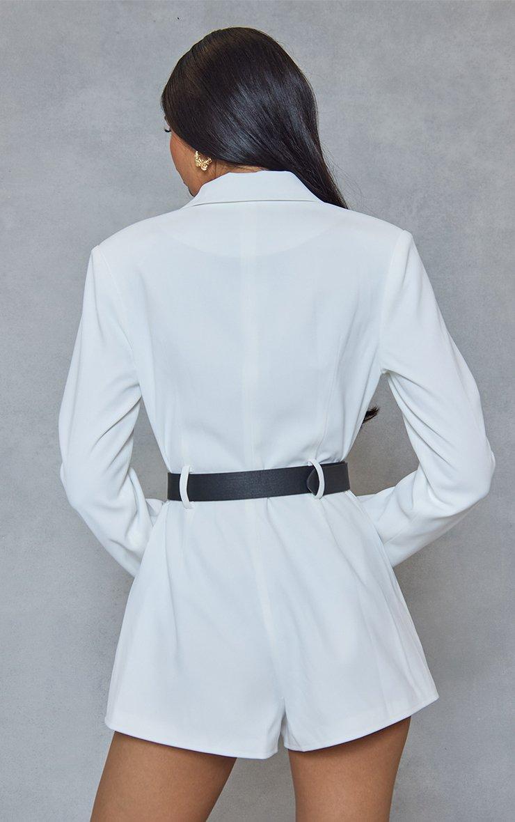 long sleeve belt detail tailored blazer playsuit in white