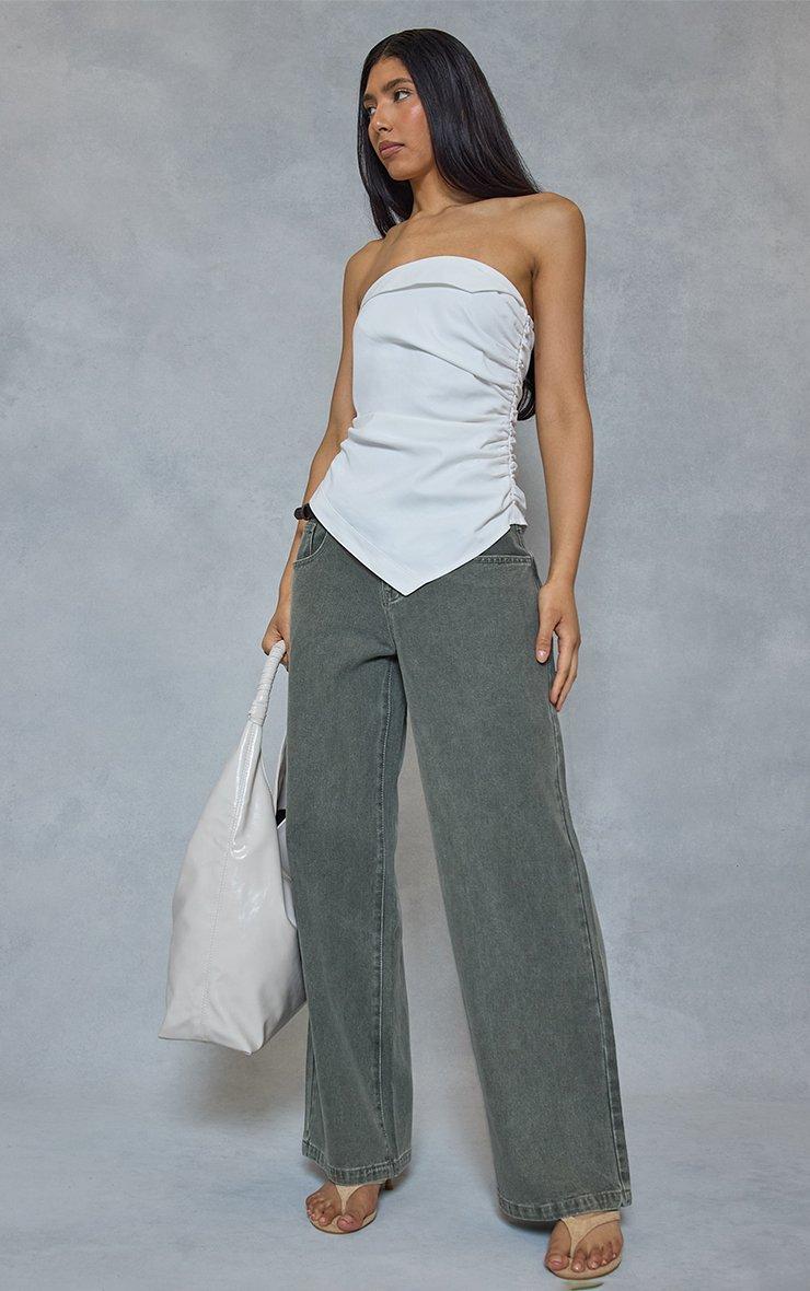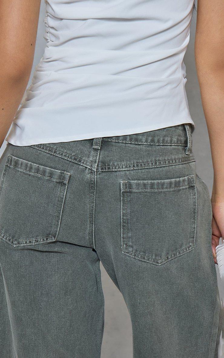 Low Rise Seam Detail Straight Leg Jeans In Khaki Denim