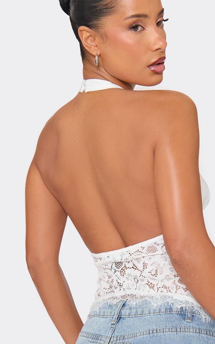 halter neck lace body detail top in white satin
