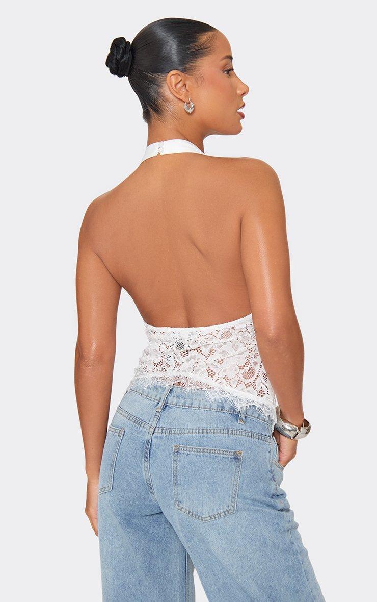 Halter Neck Lace Body Detail Top In White Satin