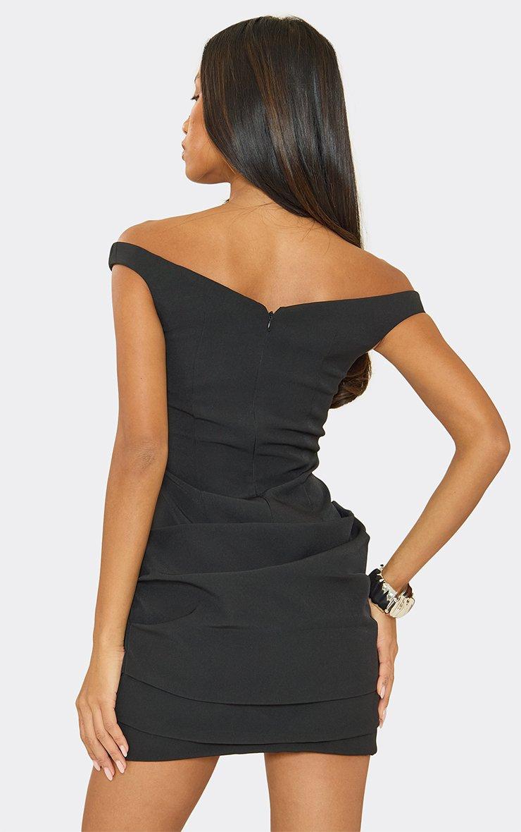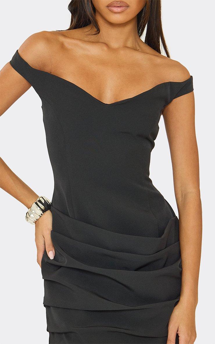 off the shoulder ruffle panel detail mini dress in black