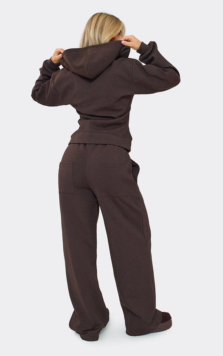 mid rise seam detail straight leg joggers in chocolate brown interlock