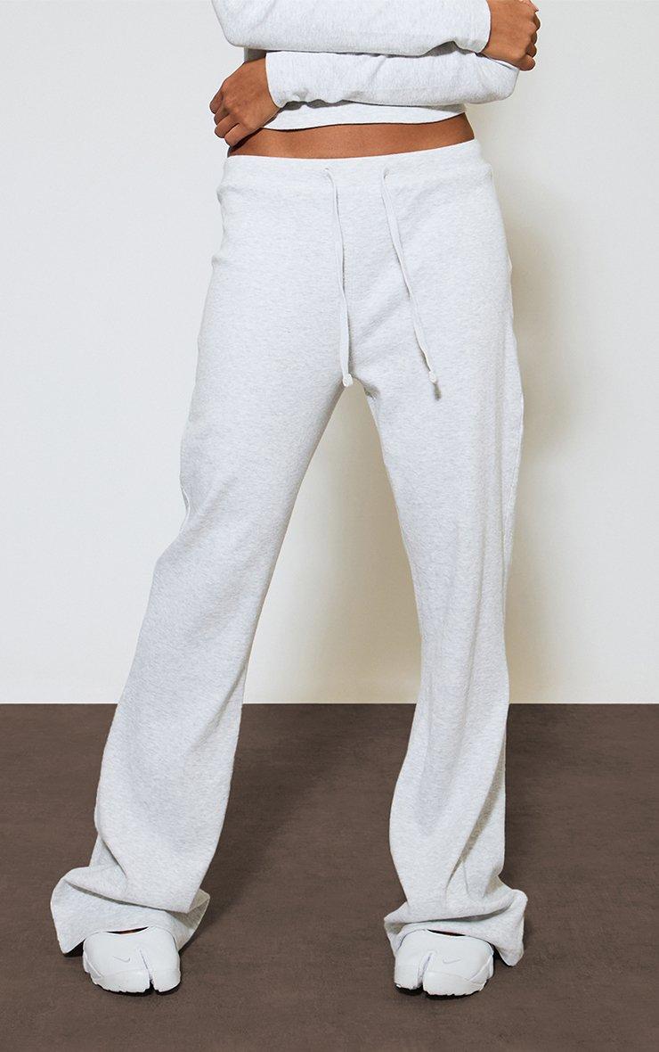 low rise drawstring waist straight leg trousers in light grey marl