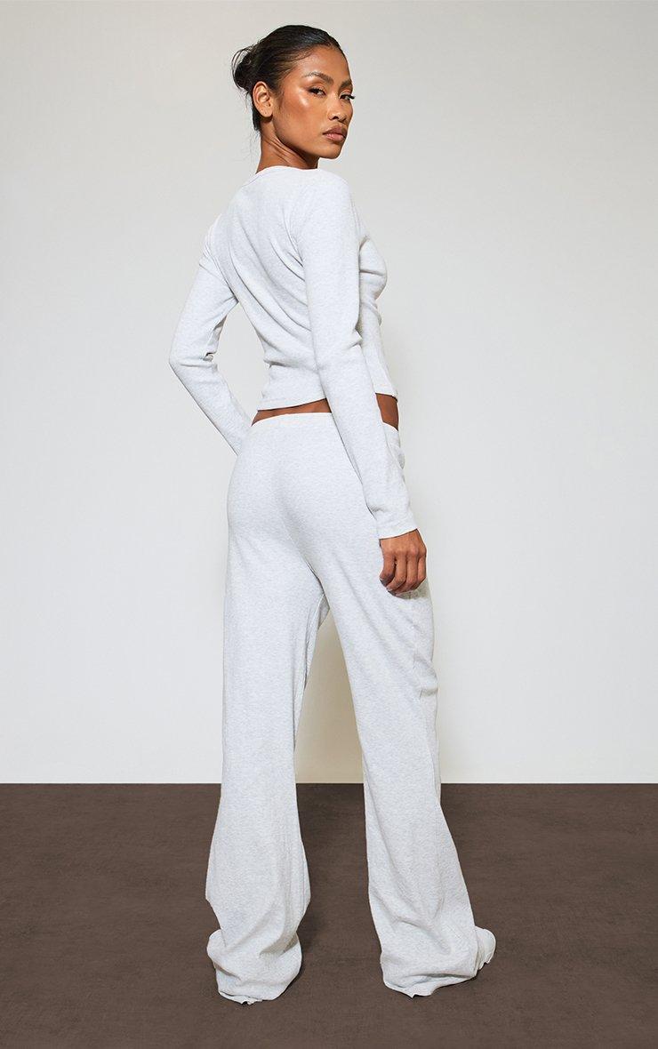 Low Rise Drawstring Waist Straight Leg Trousers In Light Grey Marl