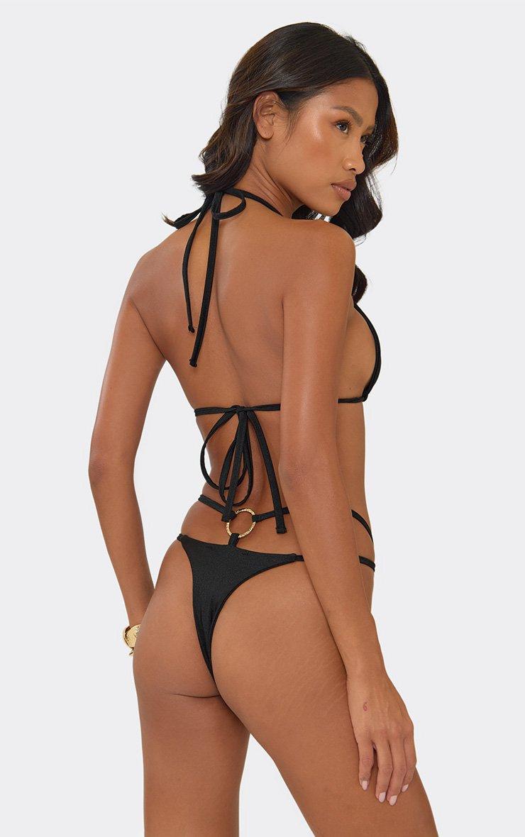 Triangle Hammered Ring Detail Bikini Set In Black