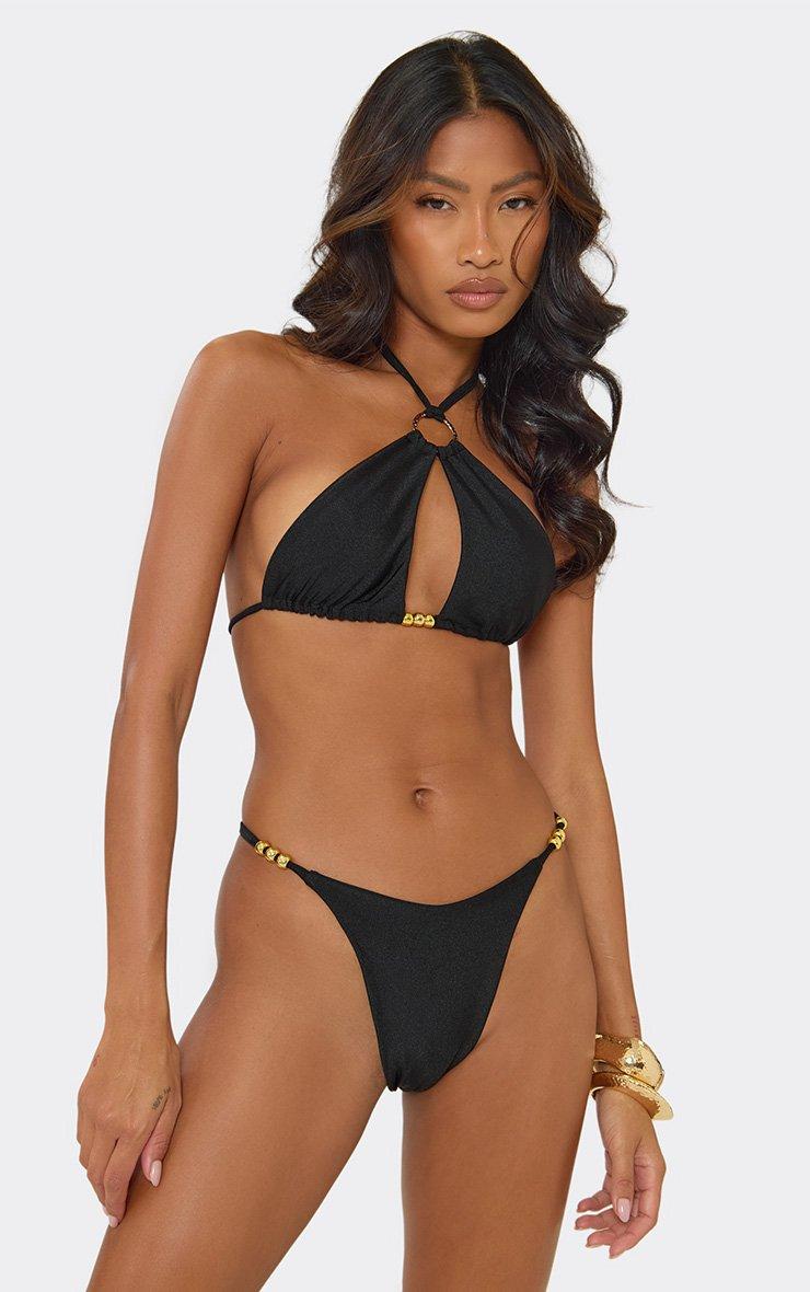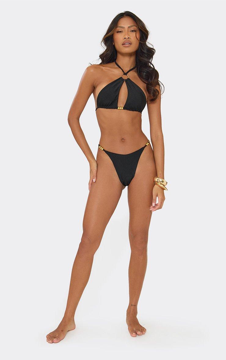 Halter Neck Hammered Ring Trim Detail Bikini Set In Black